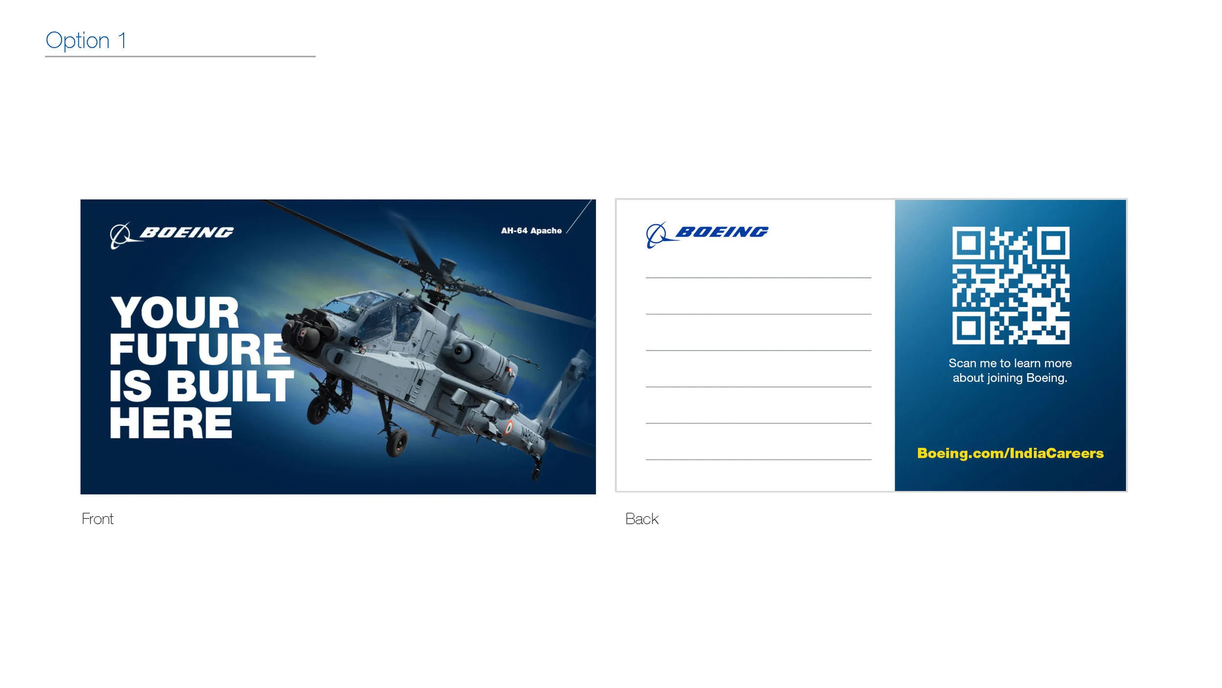 Graphics from campaign elements were designed with the creative collaboration from TMP Worldwide Chicago to fit a moving Tradeshow Exhibit for Boeing. Successfully pitched the isolation of the Boeing symbol to communicate the brand’s icon on upstanding podiums. Accompanying promotional materials were also part of the deliverables I helped to design.